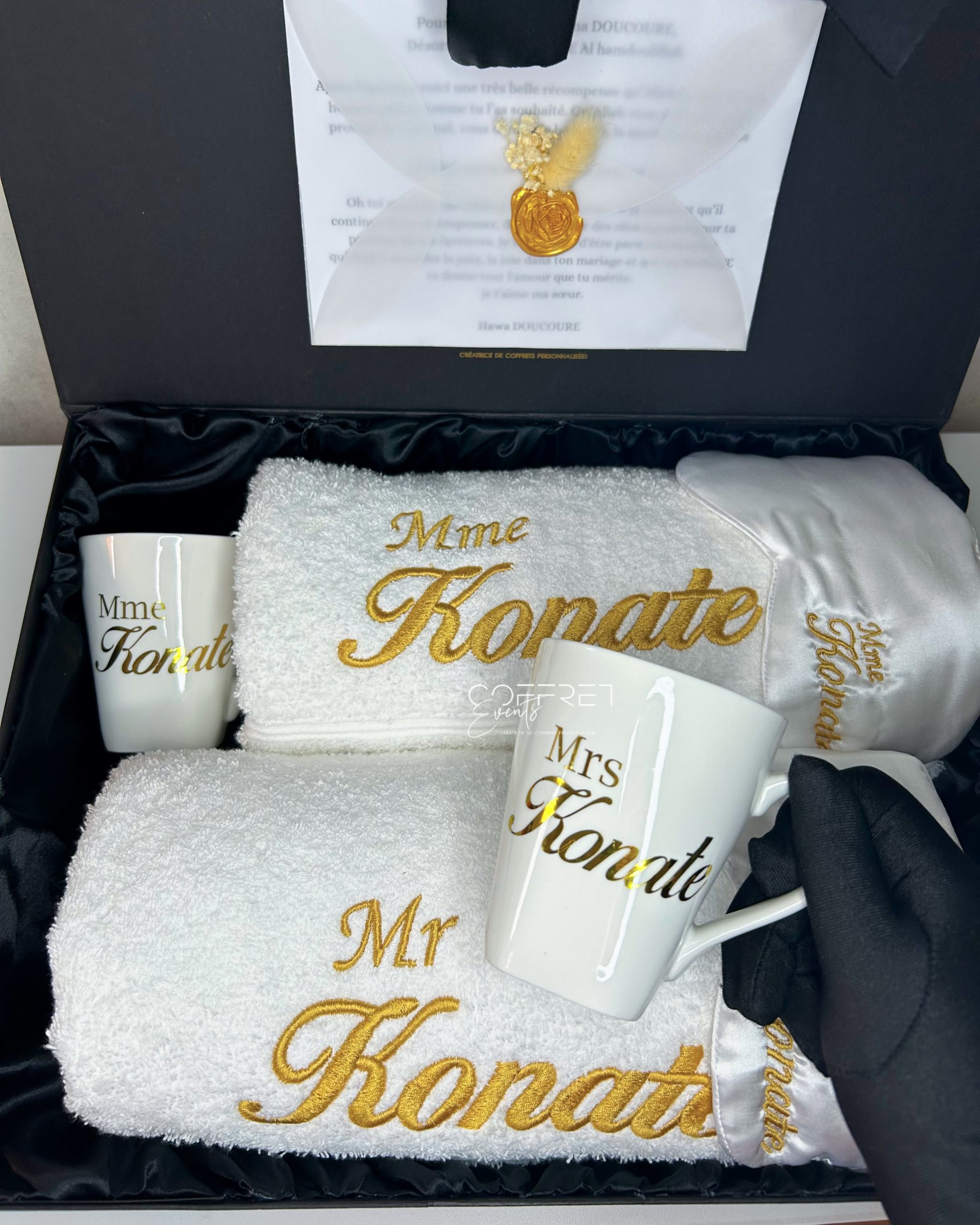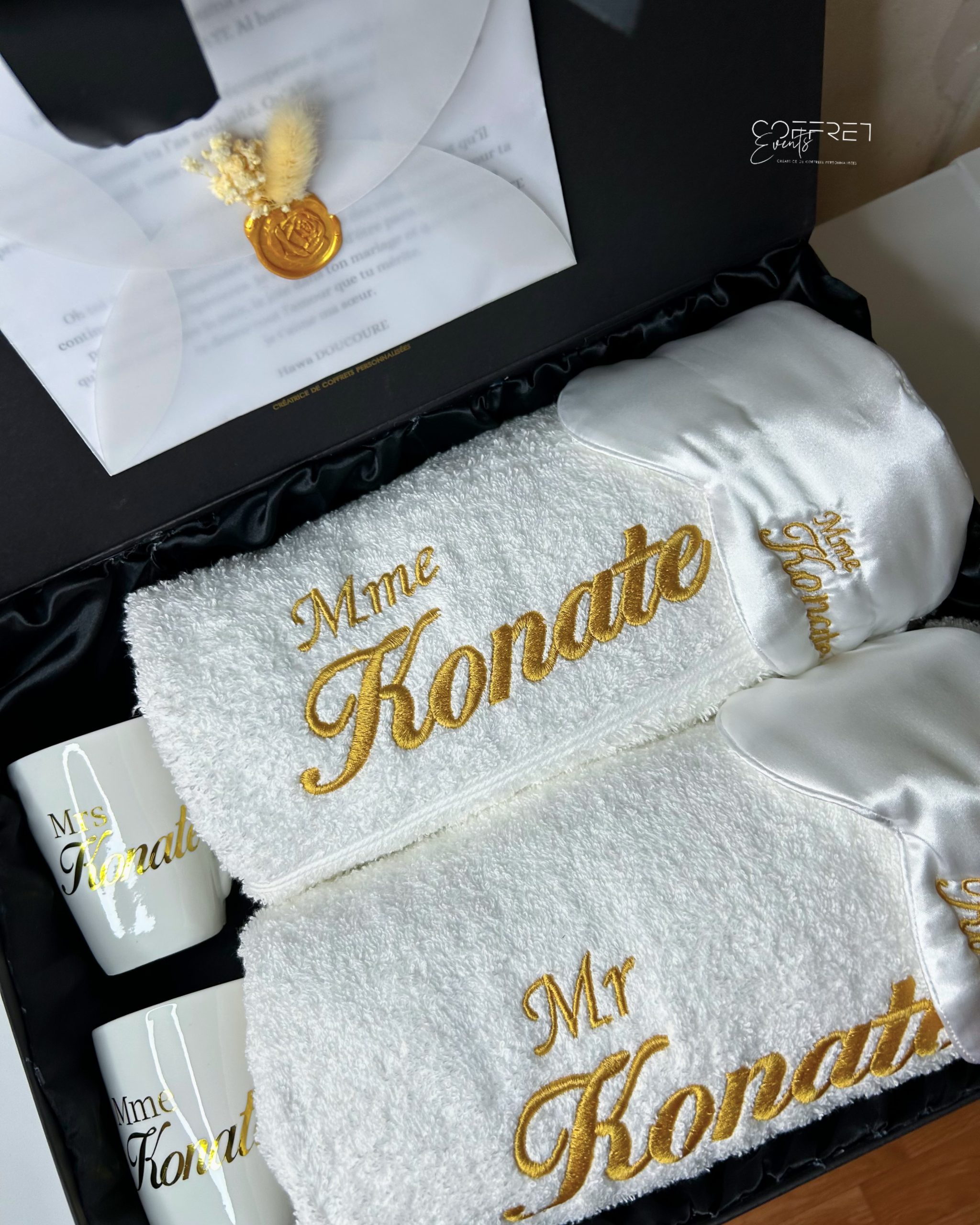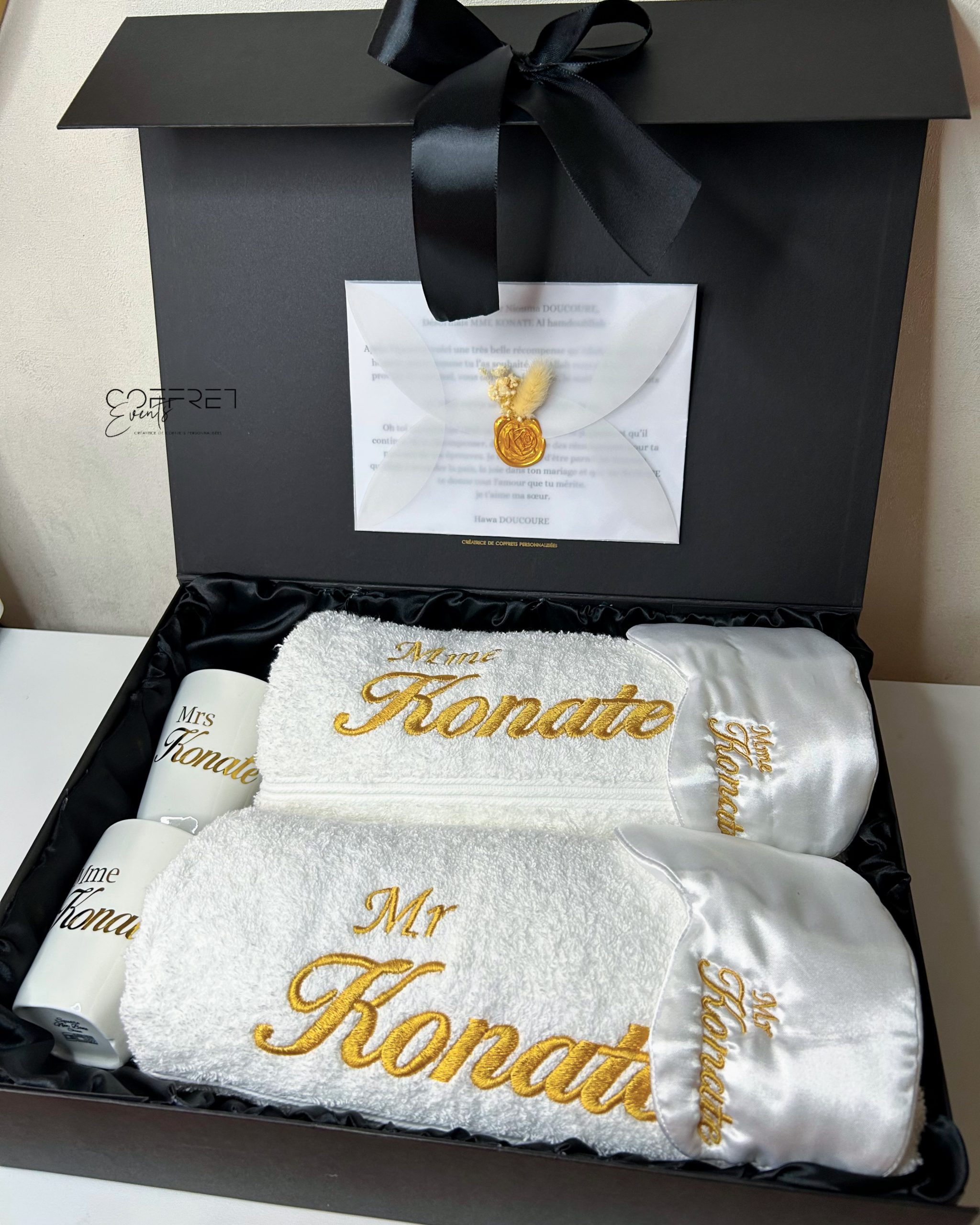 - 1 boite satiné noir (taille L) personnalisée |