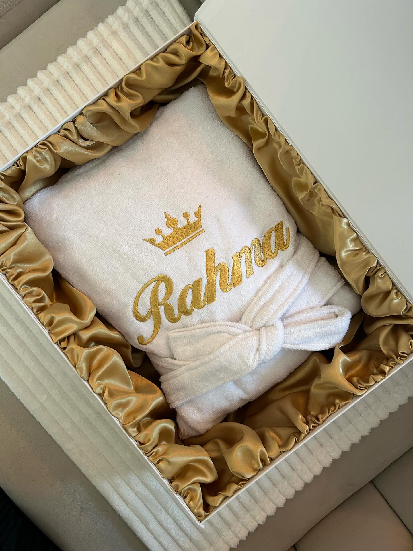 - 1 boite satiné (taille L) personnalisée – Intérieur satiné or
